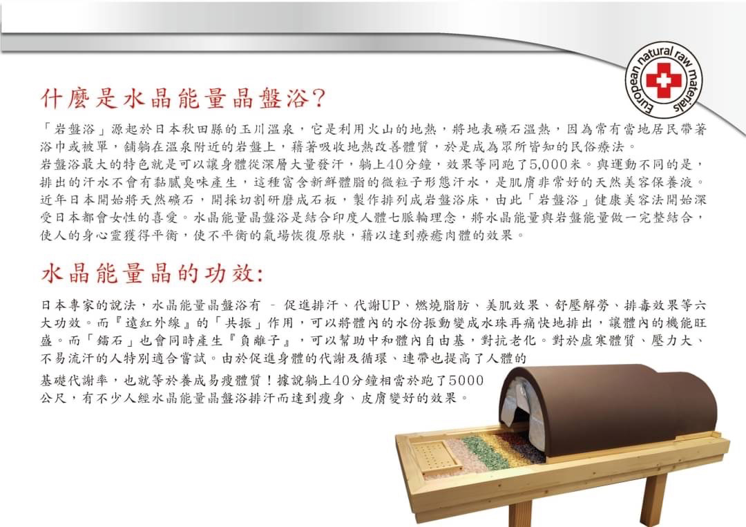 獨門秘方-獨家取得天然水晶、負離子能量石組成水晶岩盤浴,創新組合達到身心靈平衡~