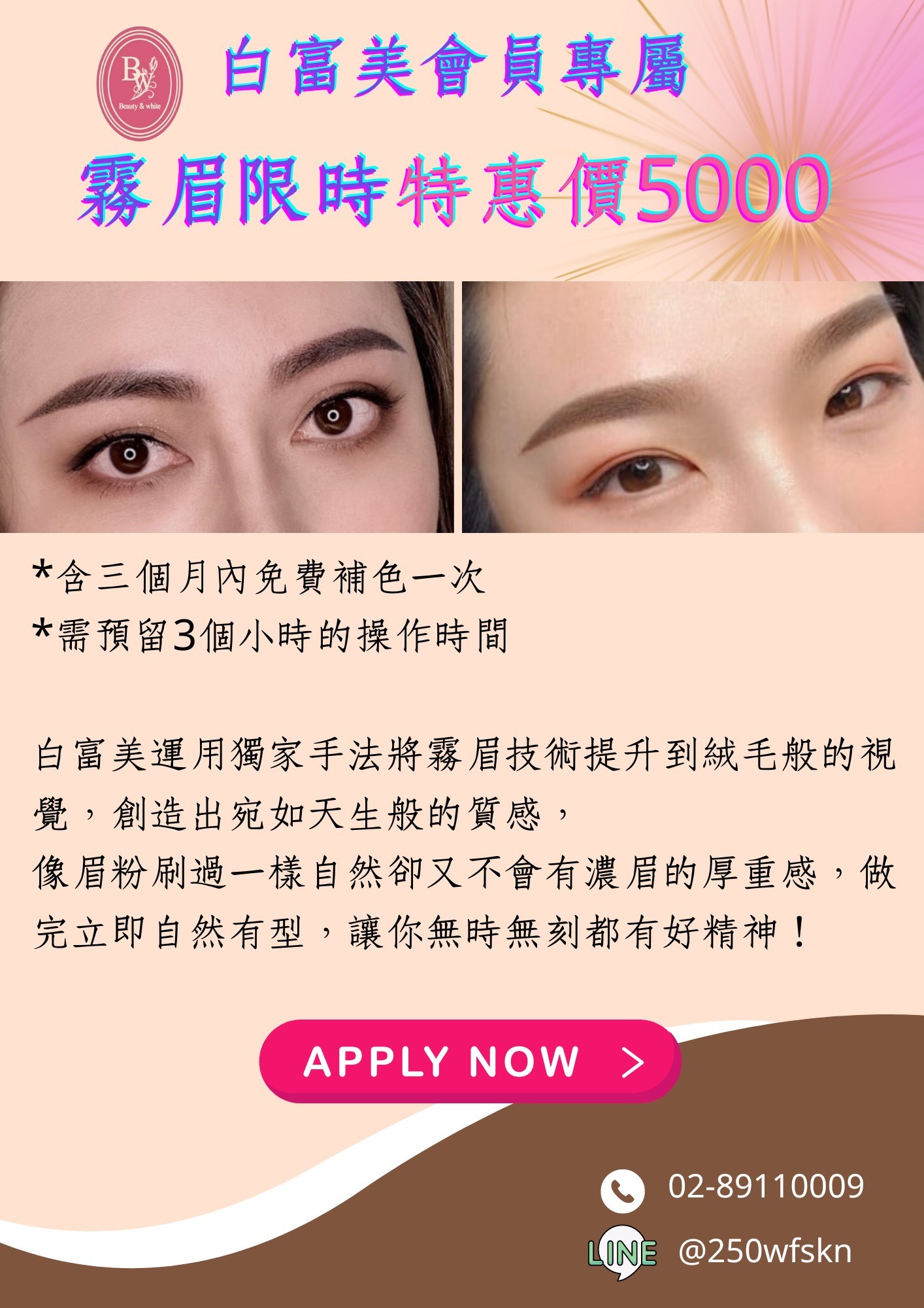 白富美會員專屬 霧眉限時特惠價5000